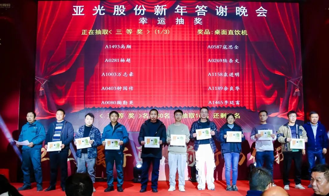 龍馭祥云傳喜報(bào),蛇銜瑞草送佳音。在這歲末年初的溫馨時(shí)刻,我們歡聚一堂,共同迎來亞光股份2025新年答謝晚宴的璀璨開場。共享溫馨時(shí)刻,共賞藝彩絕倫,共赴美好前程,在這五彩燈帶的交相輝映下,滿場縈繞在熱烈和歡快的氛圍中。